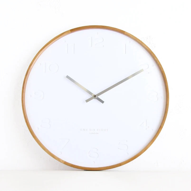 The Freya wall clock by One Six Eight London boasts a simple face...