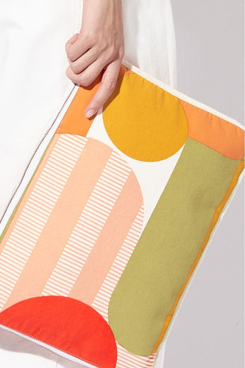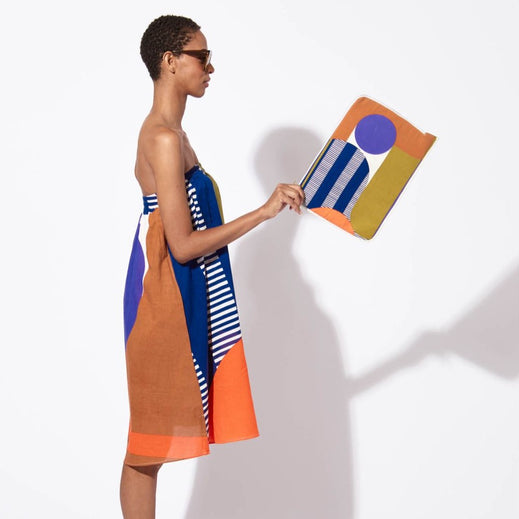 A wonderfully graphic design featuring a bold play of colour and pattern.