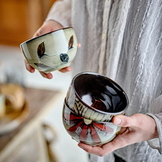 The Samran Bowl by Bloomingville Creative Collection is made of stoneware in earthy hues with a captivating hand-painted flower motifs in a deep dark red colour.