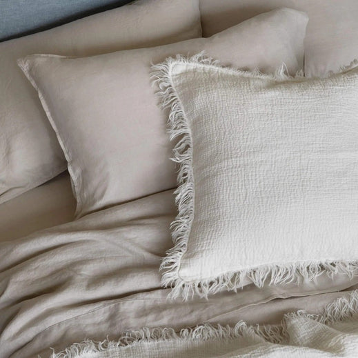 Handloomed from pure linen with a subtle crinkled texture, the Ava collection is a luxurious addition to the home. Crafted with a delicate fringing in a range of timeless colours, this relaxed woven cushion can be styled effortlessly on the bed or sofa.