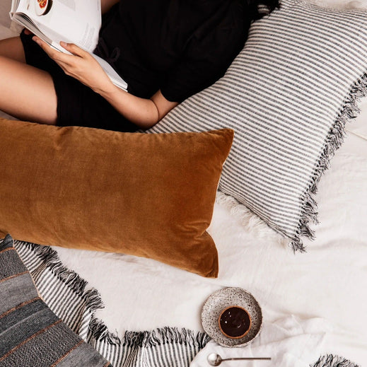 Handloomed from pure linen with a subtle crinkled texture, the Ava collection is a luxurious addition to the home. Crafted with a delicate fringing in a range of timeless colours, this relaxed woven cushion can be styled effortlessly on the bed or sofa.