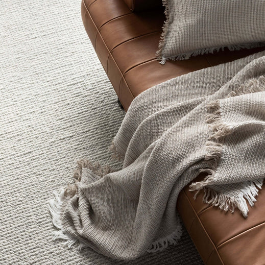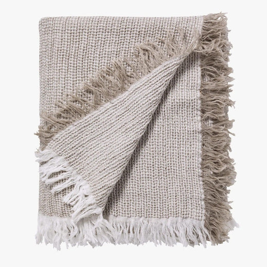 Crafted from a beautifully soft blend of cotton and linen, our waffle Blake Blanket adds an extra layer of luxury to any interior scheme. Wonderfully light and breathable, the tactile honeycomb weave is edged with a simple fringe in natural and white.