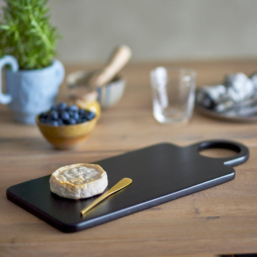 The Hombre Cutting Board by Bloomingville is a beautiful cutting board made of stained black mango wood. Its round handle adds a cool graphic detail, making it not only functional but also a beautiful addition to the kitchen. Whether you're using it as a tray to serve cheese and charcuterie, or as a decoration, this cutting board will surely impress your guests.