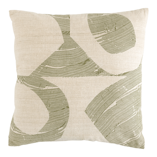""In the Greek language ‘aeolus’ translates to ‘wind’. And we all know what helps to bring the wind of change along when you need it – a good brainstorm session, preferably spent while resting our head on Urban Nature Culture’s Aeolus cushion. This silk cushion brings a print of small, refined lines in Moss Stone, forming fragments; like thoughts carried upon the wind of change. "
