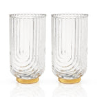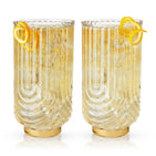 Polished gold and draping glass swathe the surface of this highball glass duo, adding a vestige of the Gilded Age to an already elevated set of glassware. Fashioned from high-quality glass, each tumbler accommodates 15 oz., making them exquisite vessels for your favorite carefully crafted cocktails.