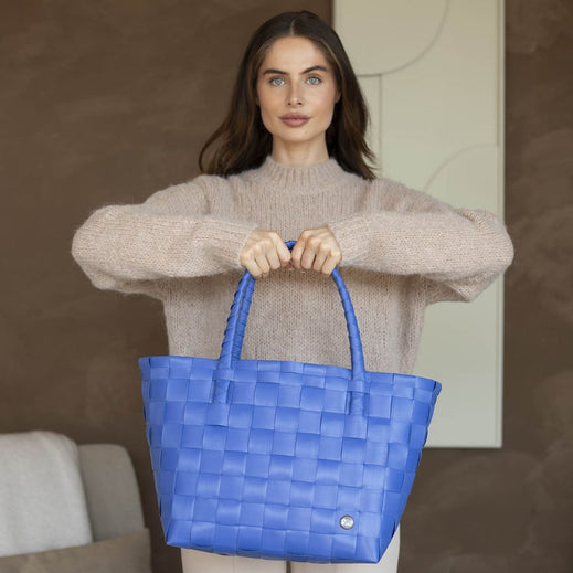 The Paris shopper is a practical carrier bag in a handy size. This hand-braided shopper makes plastic bags unnecessary! It offers enough room for your daily groceries or for a day to the beach. Hand-woven and made with recycled plastic.