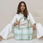 With its beautiful mix of colours, the sturdy Mingle bag adds a special touch to every outfit! Its dynamic pattern and dark handles are a perfect match. It’s the perfect bag for the beach, the sauna or a weekend away. The Mingle is comfortable to use, whether carrying it by its handles or slung across your shoulder. Hand-made from recycled plastic.