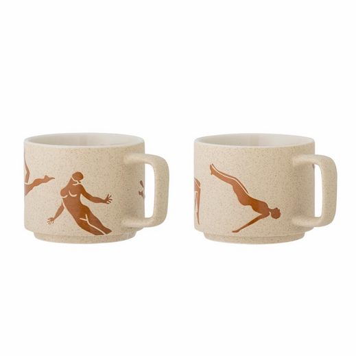 he Harlow Mugs from Bloomingville is a set of 2 stackable mugs. They have a nice light color and a beautiful art embossed in the glaze. Mix and match with other mugs for a nice and personal styling.