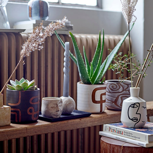 The Lija Decoration Flowerpot by Bloomingville is a cheerful flowerpot for your flowers and plants. The sophisticated mix of white and terracotta lines give it a very ethnic appearance, due to the nature of the glaze. The flowerpot has been handcrafted, and because of the material used it may not be 100% waterproof and colour variations may occur.