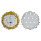 The Lion Cushion illustrates a playful lion on the one side and a dotted pattern in grey & white on the other side.