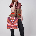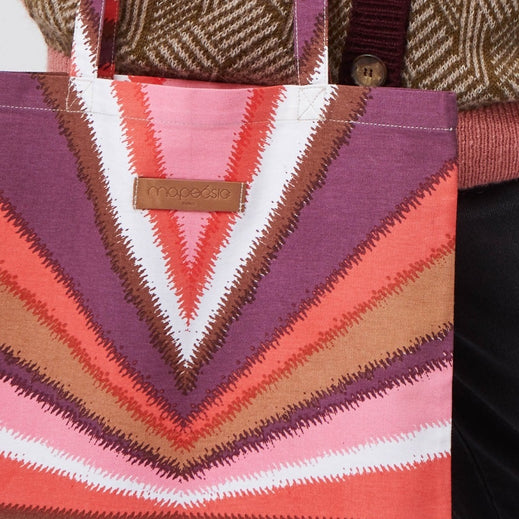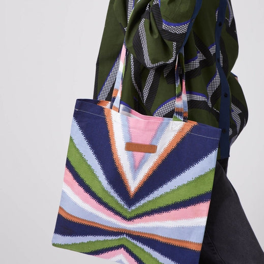 A wonderfully graphic design featuring a bold play of colour and pattern. A bag for toting all the things.