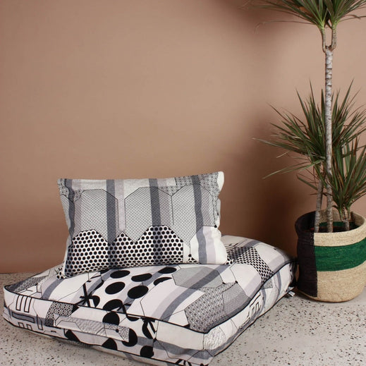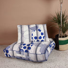 A variation of symmetrical patterns with a Mediterranean look can be seen on this soft cotton cushion cover. The delicacy of the patterns is remarkable.