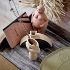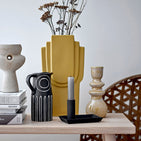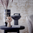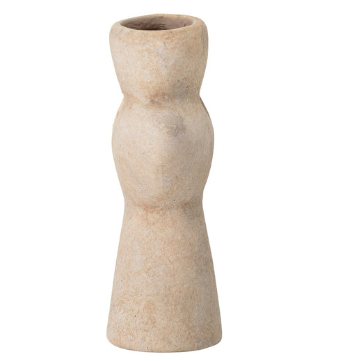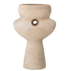 This deco vase is made to stand out positively with its fresh design. The shape is new and refreshing compared to the classic shape of vases and with a hole placed in the centre that breaks up the shape and gives it a light touch. The vase is made of terracotta in a natural light colour variation that will fit perfectly on any table, dresser, shelf, window sill etc.