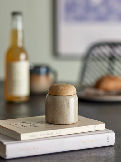 The Payana Jar w/Lid by Bloomingville is perfect for spices or storage in the kitchen. It is made of marble and the lid is made of mango wood. The beauty of a natural stone is that no two pieces are exactly alike. Each one is a unique work of art forged by Mother Nature over millennia using heat, pressure and lots of different minerals and organic materials. The way these minerals settle into the stone is what causes the huge variety of colours, patterns, textures and veins in each slab.