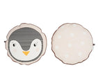 The Penguin Cushion illustrates a playful penguin on the one side and a dotted pattern in rose and white on the other. Made of 100% organic cotton printed and has a feather and down filling.