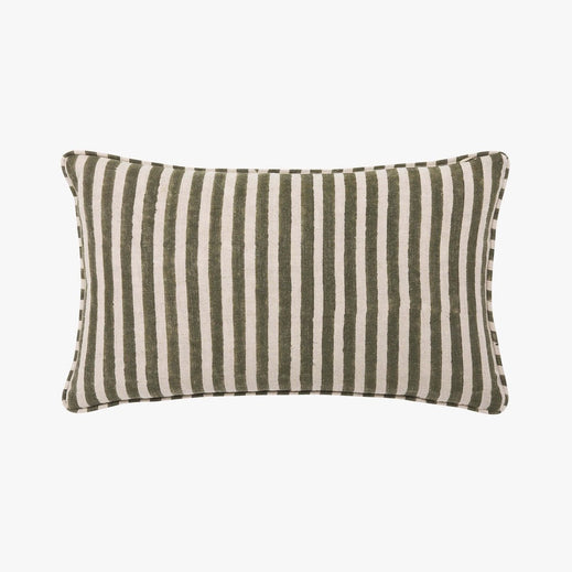 Our Quinn collection celebrates modern design while using ancient artisanal techniques. Hand block printed on quality pure linen and designed exclusively in-house this product is a testament to craftsmanship with each individual item handmade by highly skilled artisans. Featuring a reversible stripe design on 100% linen this cushion is a statement pattern piece to add to your home.