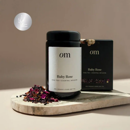 Our Ruby Rose Iced Tea is an award winning combination featuring vibrant and tangy hibiscus and elderberry with sweet rose overtones. A naturopathic formulation with traditional benefits and plant compounds which may naturally defend against oxidative stress, fortify immunity, soothe inflammation and promote a radiant complexion.