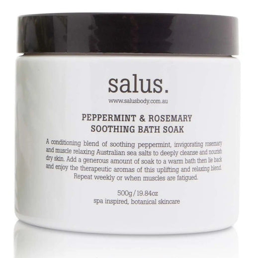 A conditioning blend of soothing peppermint, invigorating rosemary and muscle relaxing Australian sea salts to deeply cleanse and nourish dry skin. Add a generous amount of soak to a warm bath then lie back and enjoy the therapeutic aromas of this uplifting and relaxing blend. Repeat weekly or when muscles are fatigued.