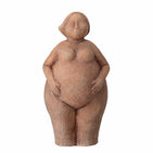 A celebration to the female body in all its glory. This little curvy lady is a reminder that women come in all shape and sizes, and we are all beautiful. She is made of brown terracotta which could lead the thoughts to a symbol on Mother Earth. None the less her contours and featureless face makes her a decorative piece of home decor in any home.