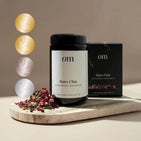 Our Spicy Chai Tea is an award-winning caffeine free combination offering an aromatic medley of traditional Indian spices with warm citrus-rose overtones. These revered Ayurvedic botanicals have traditional benefits and plant compounds that may naturally promote healthy digestion, balance blood sugar, enhance circulation, fortify immunity, and invigorate energy.