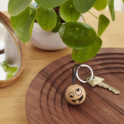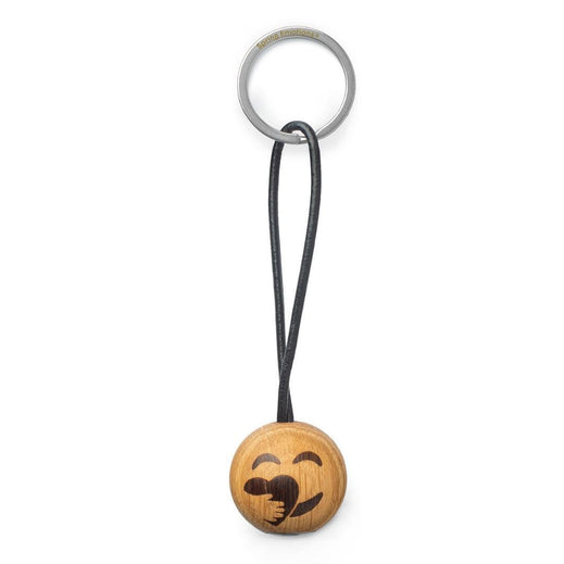 Keychains that warm your heart. A little reminder to take some time out for self-care in the middle of your busy day - and it keeps track of your keys too. The wooden ball itself is made of FSC-certified oak and is connected to the ring with a leather strap.