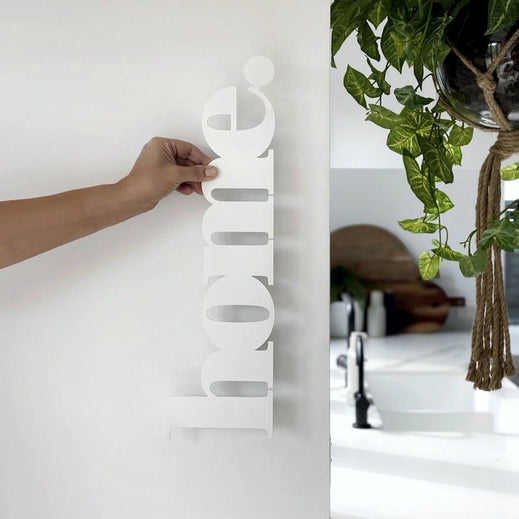 Beautiful and fresh, "home" "home" sign is a stylish welcome for your home - inside or out. cut from high grade stainless steel and electro powdercoated with a super durable dulux uv resistant finish in classic matte black.