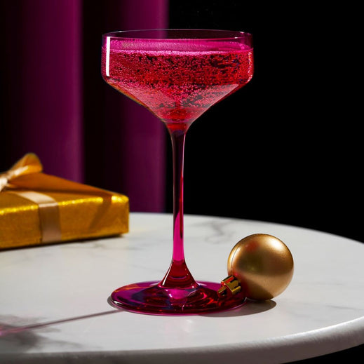 Crafted from European crystal with a gorgeous berry pink hue, these coupe glasses bring a warm glow to shaken cocktails. Add some colour to your glassware collection with these stemmed cocktail glasses.