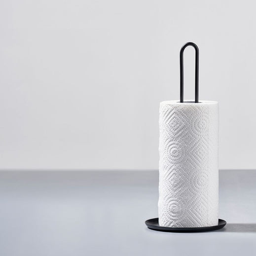 The Kitchen Roll Holder tidies up your kitchen space with ease. The holder features a softly rounded metal plate, with an edge that exerts an effective grip on the kitchen roll while providing it with a solid base on the table.